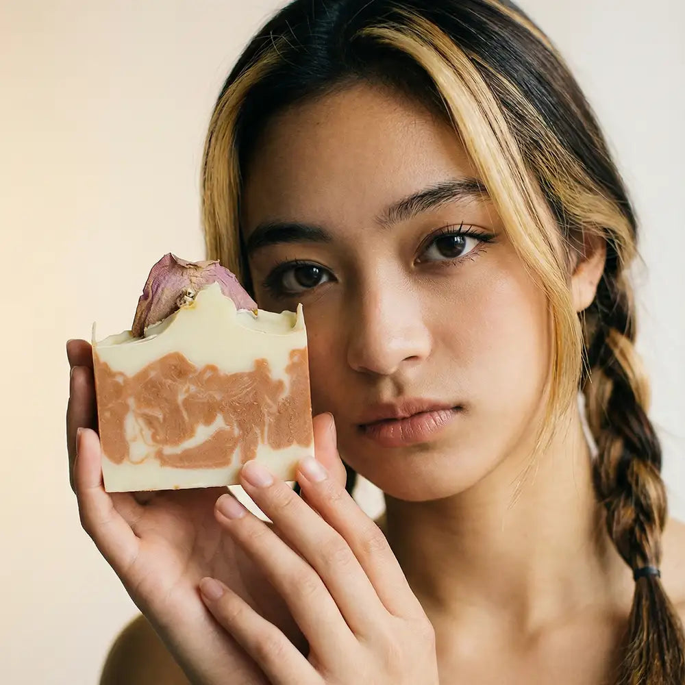 Vår Ros kropp & ansiktstvål är handgjord och inspirerad av enkla hudvårdsritualer. En fyllig, blommig rosdoft med inslag av jasmin, ylang ylang och apelsin, förfinad av geranium. Huden blir ren, mjuk och behagligt återfuktad.
