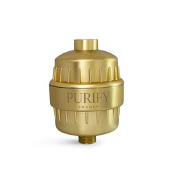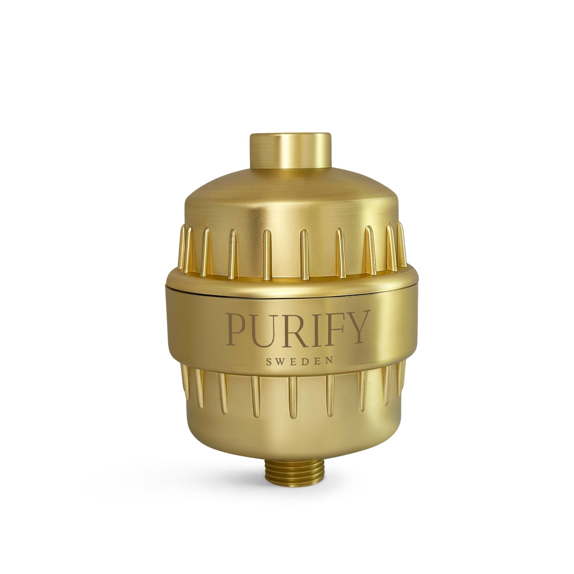Purify´s duschfilter tar bort över 90% av skadliga ämnen som klor och föroreningar,